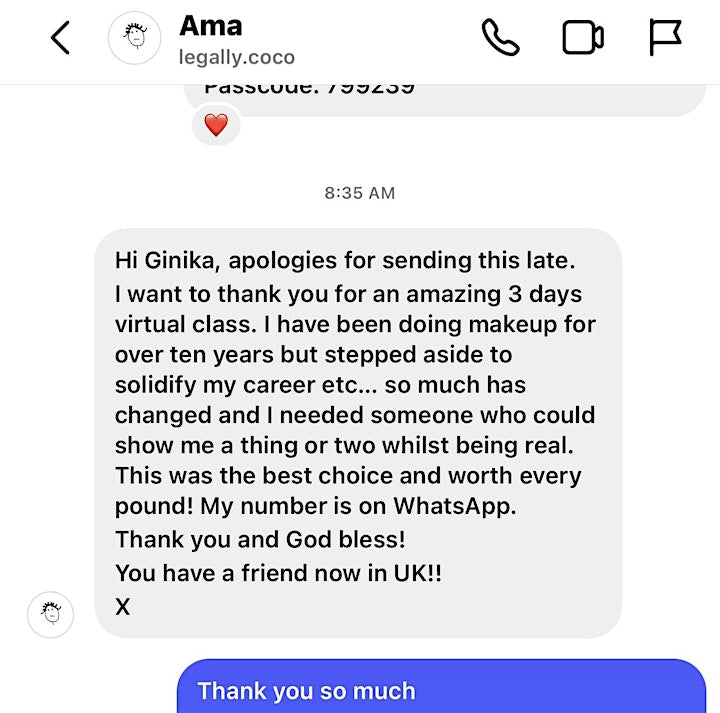 YOUR TUTOR: Ginika Temple is a Canada Based professional MUA with 16years+ experience in Global beauty education. You will work alongside her during the live classes and she will be correcting your work and recommending products for you by herself in the private community