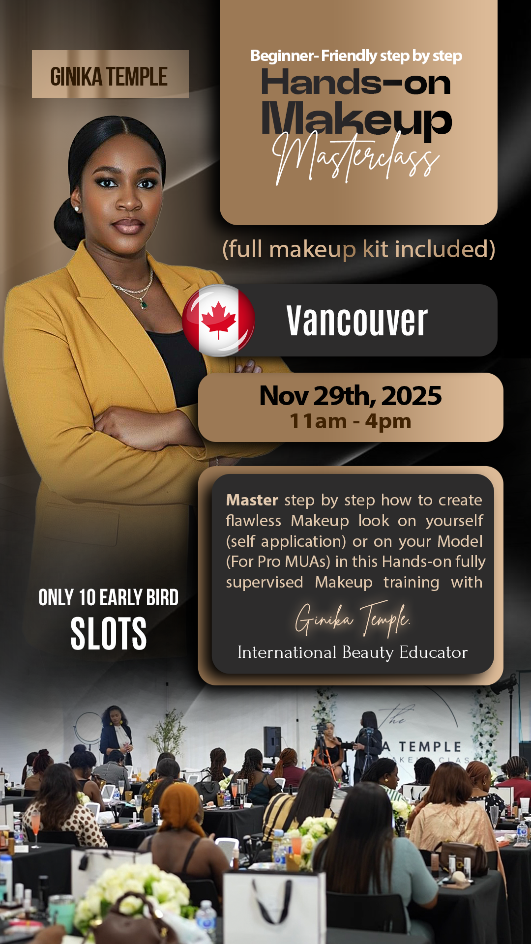 For ONE ON ONE class, fees include a full makeup kit (ONLY 3 AVAILABLE SLOTS).Time options to choose from will be emailed 24 hours after sign up, and the address will be communicated close to the date.